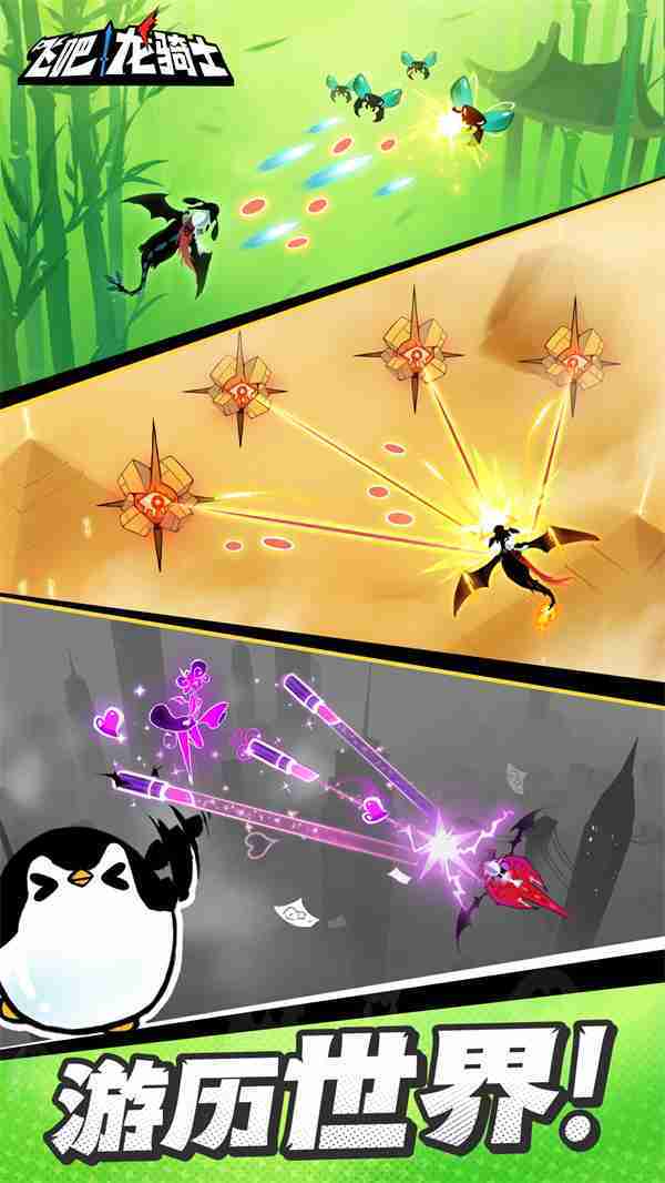 《飞吧龙骑士》是一款集合了飞行弹幕射击、、Roguelike要素和挂机养成的休闲手游,,,极具创意的吞食子弹反击玩法,,突破传统飞行射击的刻板限制,,带来了独特的爽快清屏体验。。