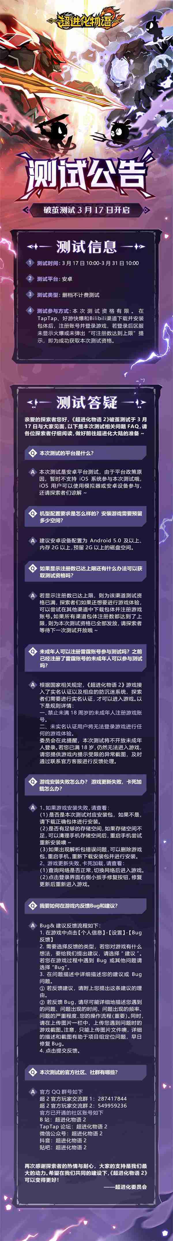 《超进化物语2》首次限号不计费删档测试——「破茧测试」将于3月17日开启,,,随我们确认测试细节,,明天迈出踏上超进化大陆的第一步吧!!!