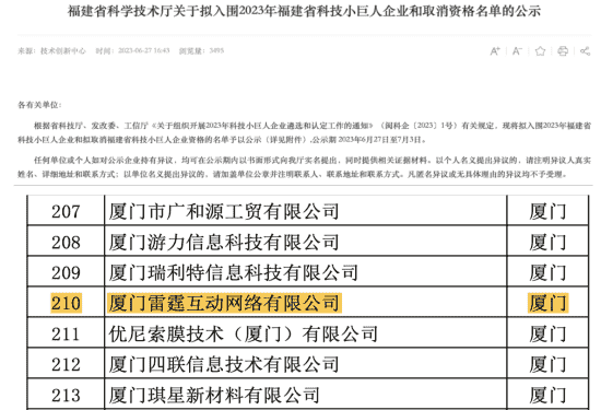 此次再次入选福建省科技小巨人企业既是对雷霆互动创新能力的认可,,也是对市场发展潜力及综合实力的高度肯定。。。